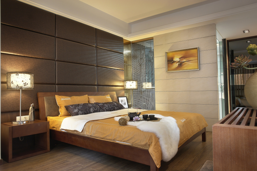 采用絨面軟包裝飾,與床鋪的質感相統一,進一步增強了居住的舒適度。
